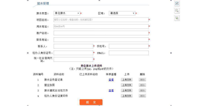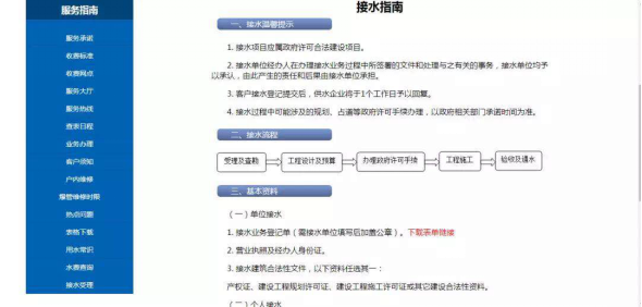 以客户需求为出发点,简化给水接入条件。精简用水报裝申请资料,切实践行“让数据多跑腿,让群众少跑路”的宗旨;链接政府相关平台,实现数据信息共享;同时,响应政府统一窗口服务管理要求,在市级和各区级政务服务中心开设供水服务窗口,并联办理建设项目。