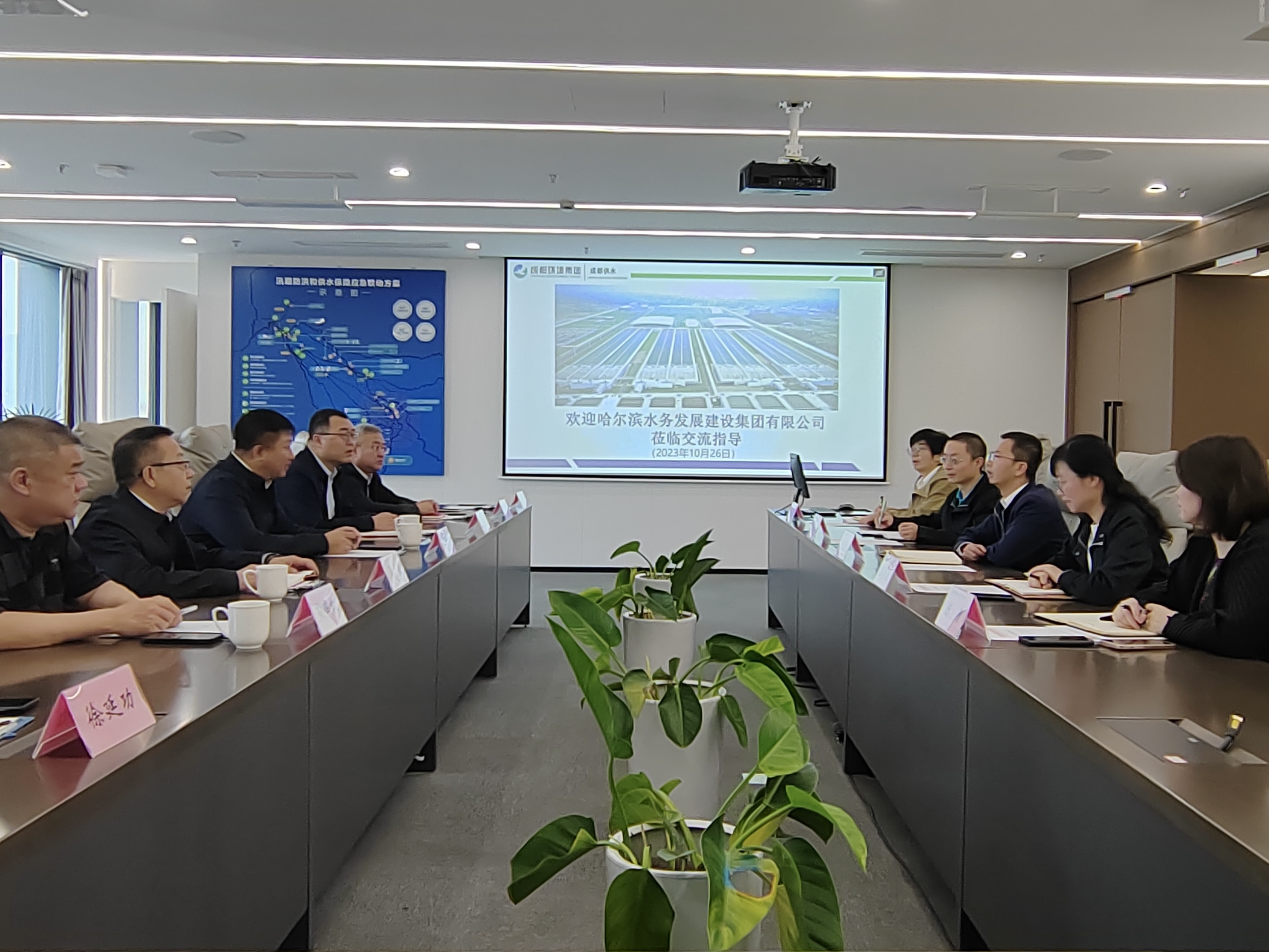 10月26日,哈尔滨水务发展建设集团有限公司党委委员、副总经理颜景琪一行7人到自来水公司考察学习,参观了自来水公司生产调度中心、呼叫中心,随后开展了交流座谈会。