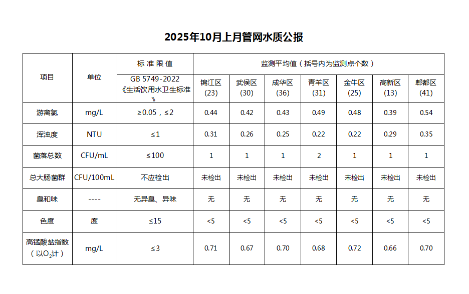 当前位置:首页>各类公告>水质公告>管网水常规七项半月检数据