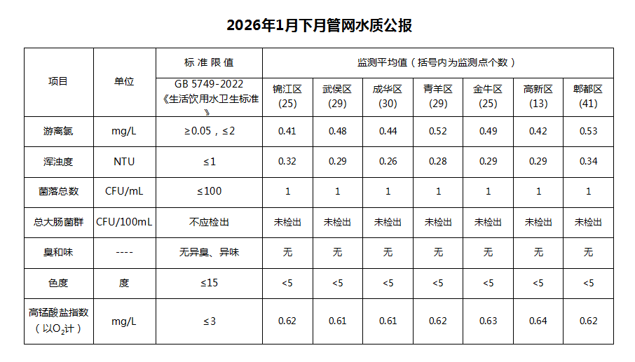 2026年1月下月管网水质公报