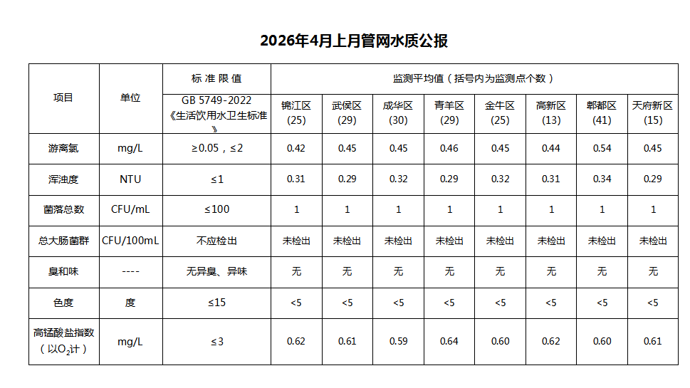 2026年4月上月管网水质公报